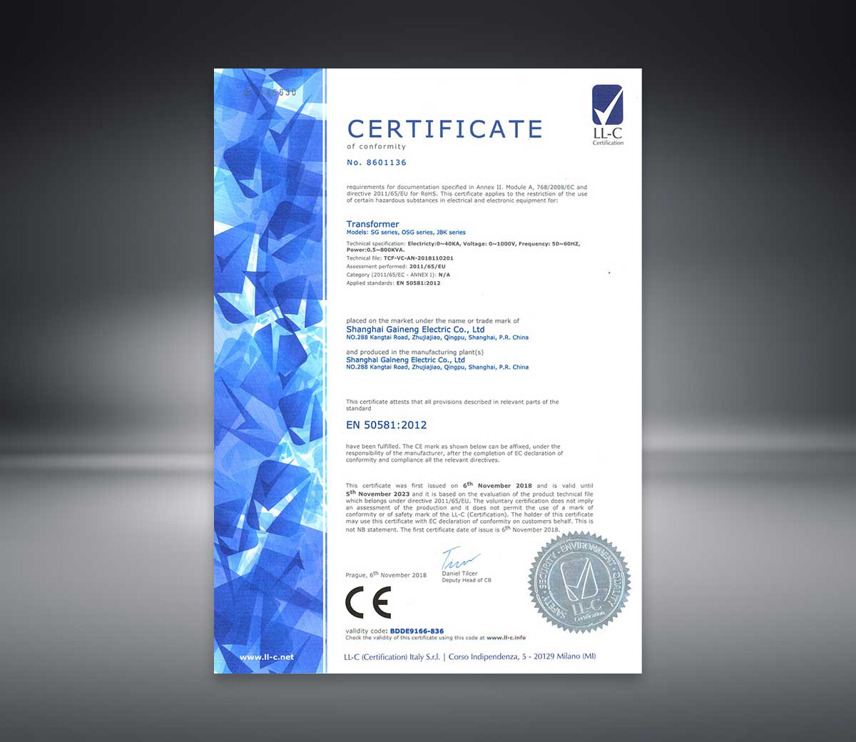 上海蓋能電氣有限公司干式變壓器