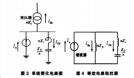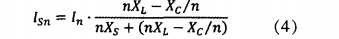 從圖中可以看出,諧波電流部分流經(jīng)XS(n),部分流經(jīng)XC(n),回路阻抗為: