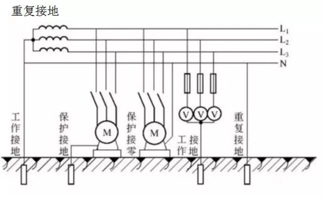 ③中性線必須重復(fù)接地,因?yàn)楫?dāng)中性線斷開時(shí),接零設(shè)備外殼上有220V對地電壓,這是絕對不允許的。