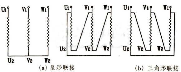 在三相變壓器中,三個(gè)原始邊緣線圈與三相交流電源的連接應(yīng)由兩種解決方案連接,即星形連接和三角形0連接。當(dāng)星形連接(Y形)連接時(shí),當(dāng)?shù)谝欢?U1.1V1.1W1為引出端時(shí),三相端1U2.1V2.1W2連接在一起,成為中性點(diǎn)。如果要引出中性點(diǎn),用N標(biāo)志,接線用YN表示。同樣,這兩種方法也應(yīng)該用于連接三個(gè)副線圈。