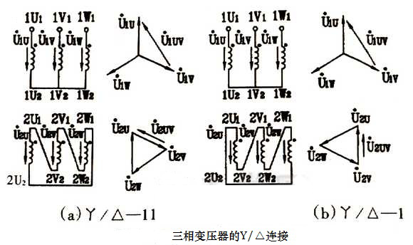 2.Y/△-11(y,d11)用于中等容量。電壓為10KV或35KV電網(wǎng)和電廠的工廠變壓器。